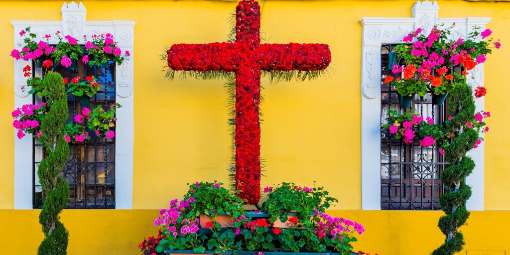 The Cruces de Mayo (May Crosses) festival has been celebrated in various parts of Spain since at least the 17th century. It is believed to have roots in the discovery of the True Cross by Saint Helena, the mother of Roman Emperor Constantine. Over time, the religious tradition evolved into a popular springtime celebration filled with colour, music, and community spirit. Today, it’s a chance for neighbourhoods, local groups, and families to come together and create the most beautiful and creative cross displays. Many towns also hold competitions to reward the best-decorated crosses.