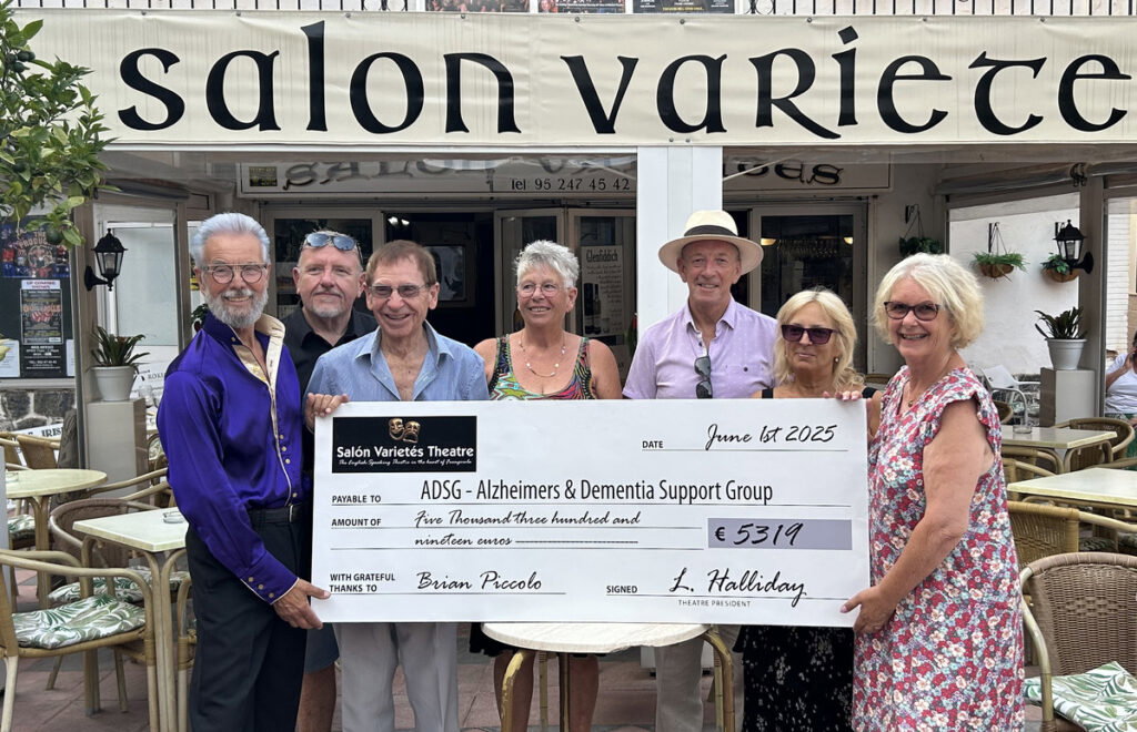 Monday, June 23 saw a gathering at the Salón Varietés in Fuengirola for the handover of a cheque to the Alzheimer’s Dementia Support Group (ADSG) for €5,319.