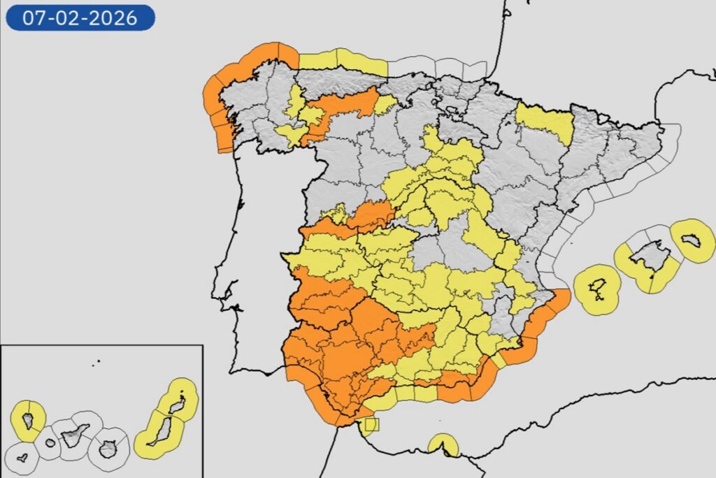 At sea, conditions are expected to deteriorate sharply. Both the Atlantic and Mediterranean coasts face rough seas, with waves of five to seven metres possible along parts of the Galician and Andalusian shoreline.