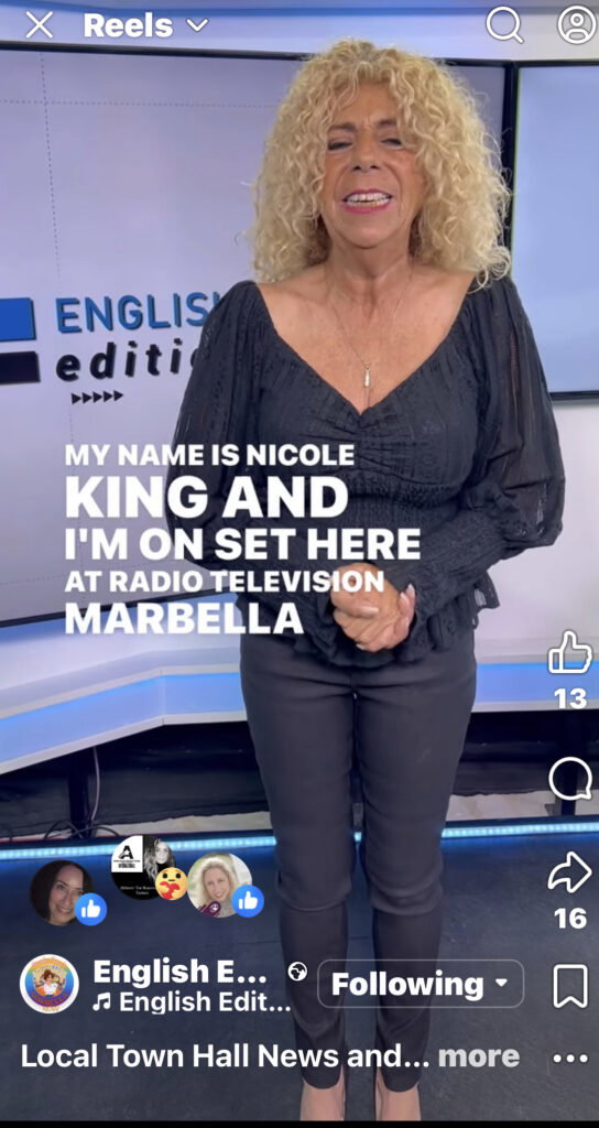 English Edition, Saturdays at 1pm RTV Marbella. Credit: Nicole King